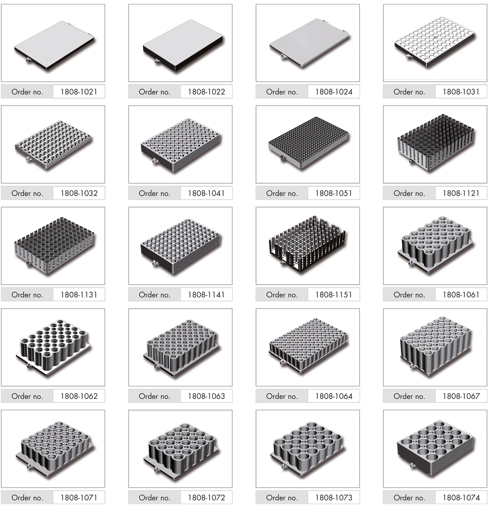 Temperatures are selectable from ambient temperature to 99°C in steps of 1.0°C. The nominal regulation accuracy is better than ±0.1°C with a uniformity of temperature distribution better than ±0.5°C at 45°C across the heating surface. Exchangeable adapter plates and thermal blocks enable a perfect adaptation to microplates, tubes or glass vials.